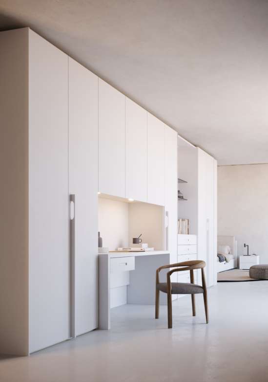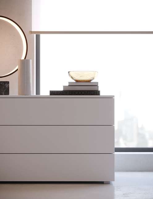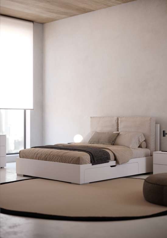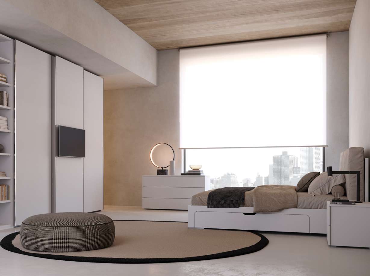 La linea Atena introduce nell'ambiente notte una luminosa funzionalitą. La soluzione si presta al massimo contenimento attraverso elementi polifunzionali e dall'estetica pulita. L'eleganza č misurata e sottolineata dalla brillantezza del colore bianco. L'utilizzo del colore č un riflesso dell'intimitą dell'ambiente, pensato per ristorare la mente, donando pace e serenitą. Atena č un progetto notte autentico, dove design ricercato ed essenzialitą si legano con delicata coerenza.