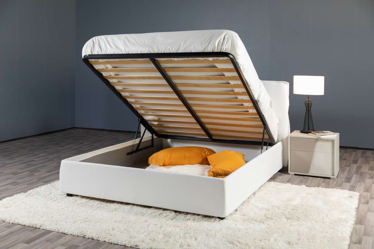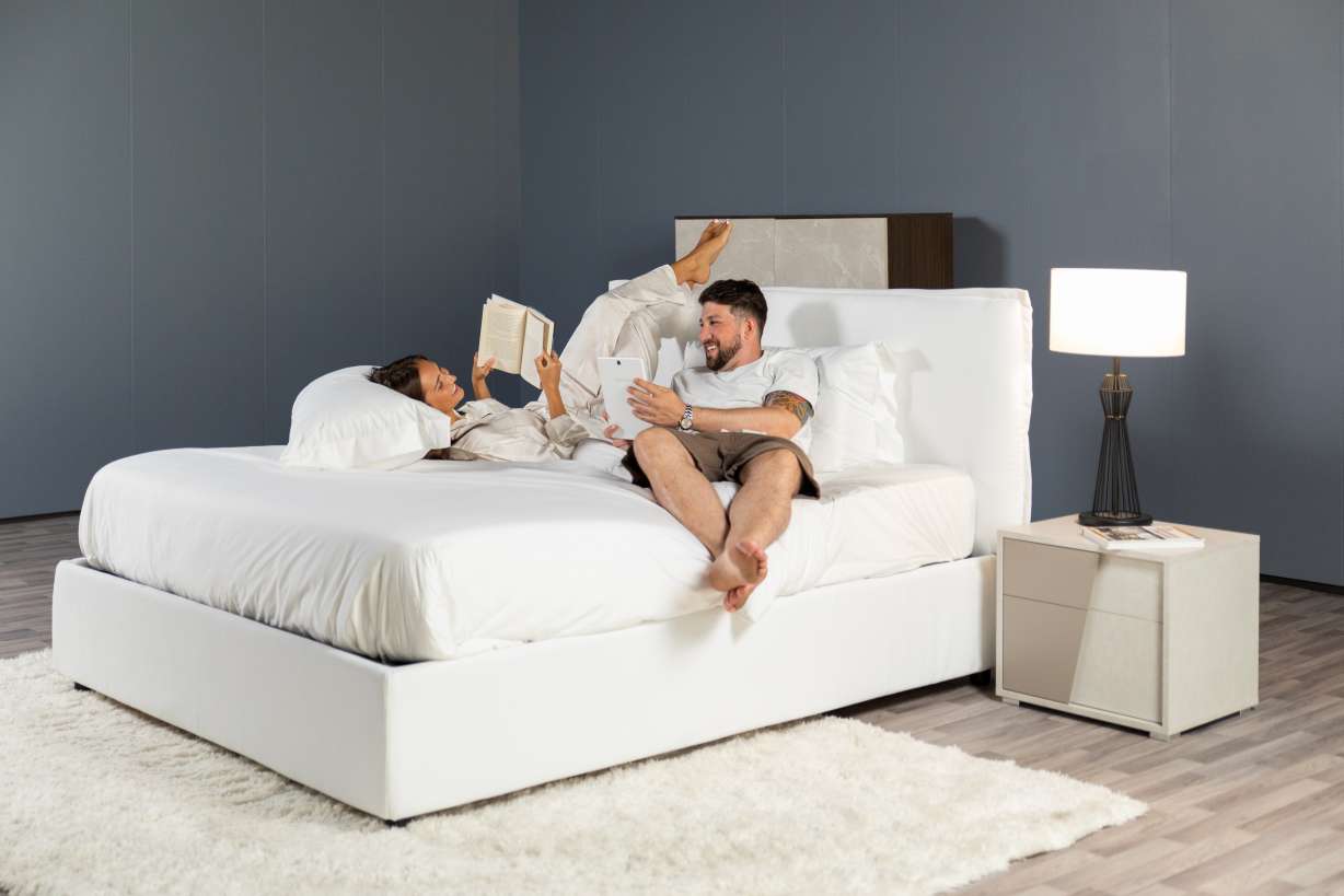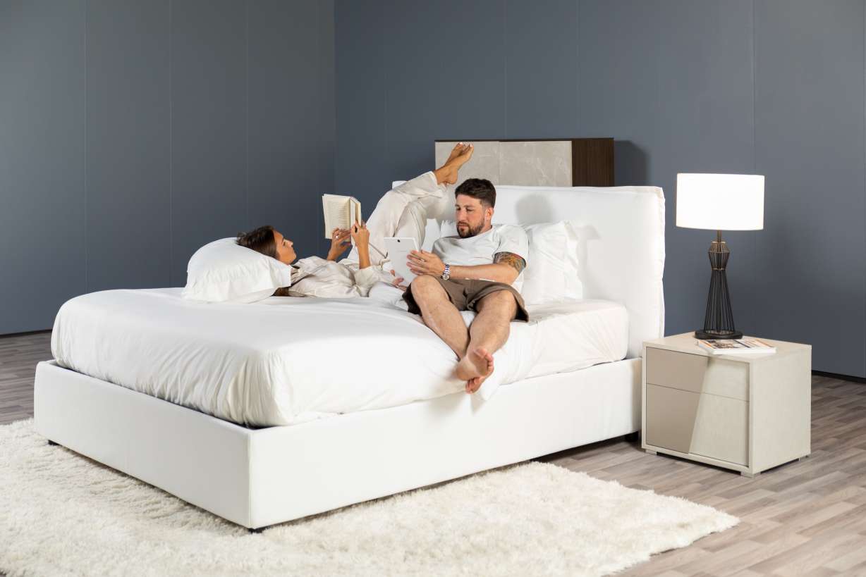 Il letto Monteverdi avvolge con le sue forme morbide. Il rivestimento è dato da tessuti di alta qualità e risulta essere fortemente pratico: il giroletto è interamente sfoderabile. La testata è imbottita con volant e invita ad appoggiarsi, distendersi e rilassarsi. La struttura inoltre, è dotata di box contenitore che massimizza ed ottimizza la capacità contenitiva della zona notte. Scegliendo il letto Monteverdi si è sicuri di dormire sempre notti serene.