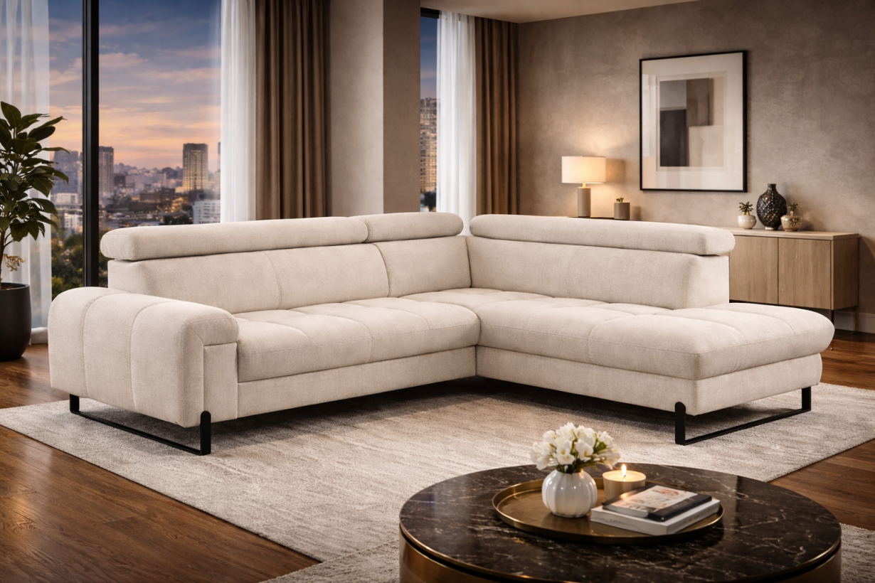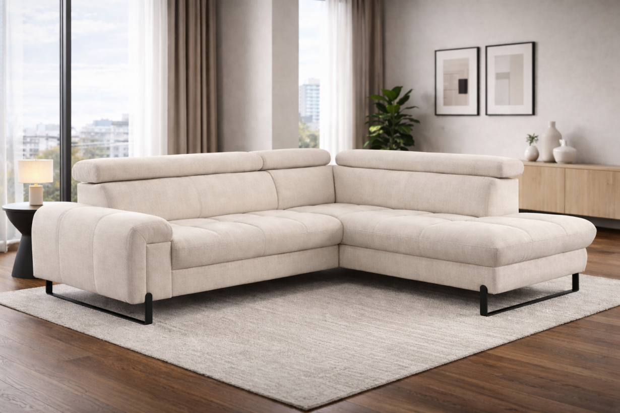Il divano Comencini interpreta il comfort contemporaneo con uno stile sobrio e raffinato, capace di attraversare le tendenze e restare sempre attuale. Le sue linee pulite disegnano un?estetica equilibrata, mentre la composizione angolare accoglie la quotidianità con naturalezza. La panchetta estraibile invita a distendersi, mentre la penisola contenitore custodisce con discrezione tutto ciò che serve. I poggiatesta regolabili seguono i tuoi gesti e le tue abitudini, trasformando ogni momento sul divano in un?esperienza su misura.