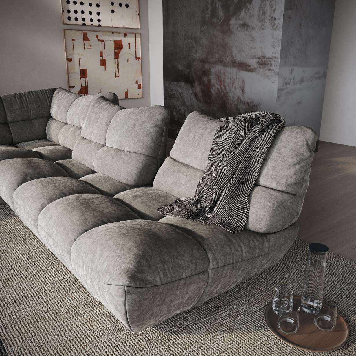 Gentileschi nasce per offrire la massima libertà progettuale e un'esperienza di relax senza compromessi. Le sue forme generose e accoglienti, unite a una seduta profonda e avvolgente, invitano a concedersi momenti di autentico benessere, trasformando il soggiorno in un'oasi di comfort contemporaneo. La componibilità modulare consente di creare infinite configurazioni: lineare, angolare, con chaise longue o soluzioni più ampie e scenografiche. Ogni elemento può essere combinato e riconfigurato nel tempo, seguendo l'evoluzione degli spazi e delle esigenze quotidiane.