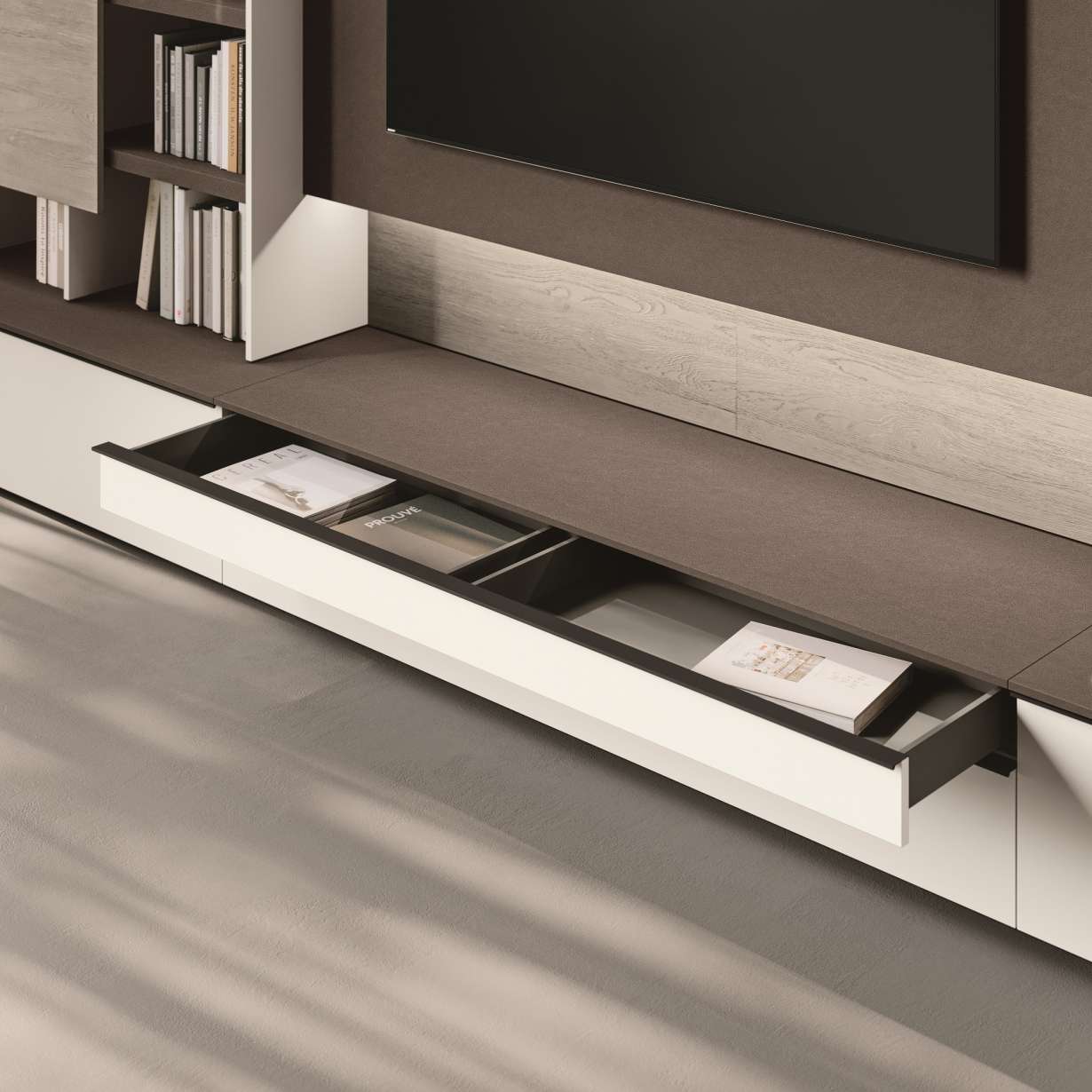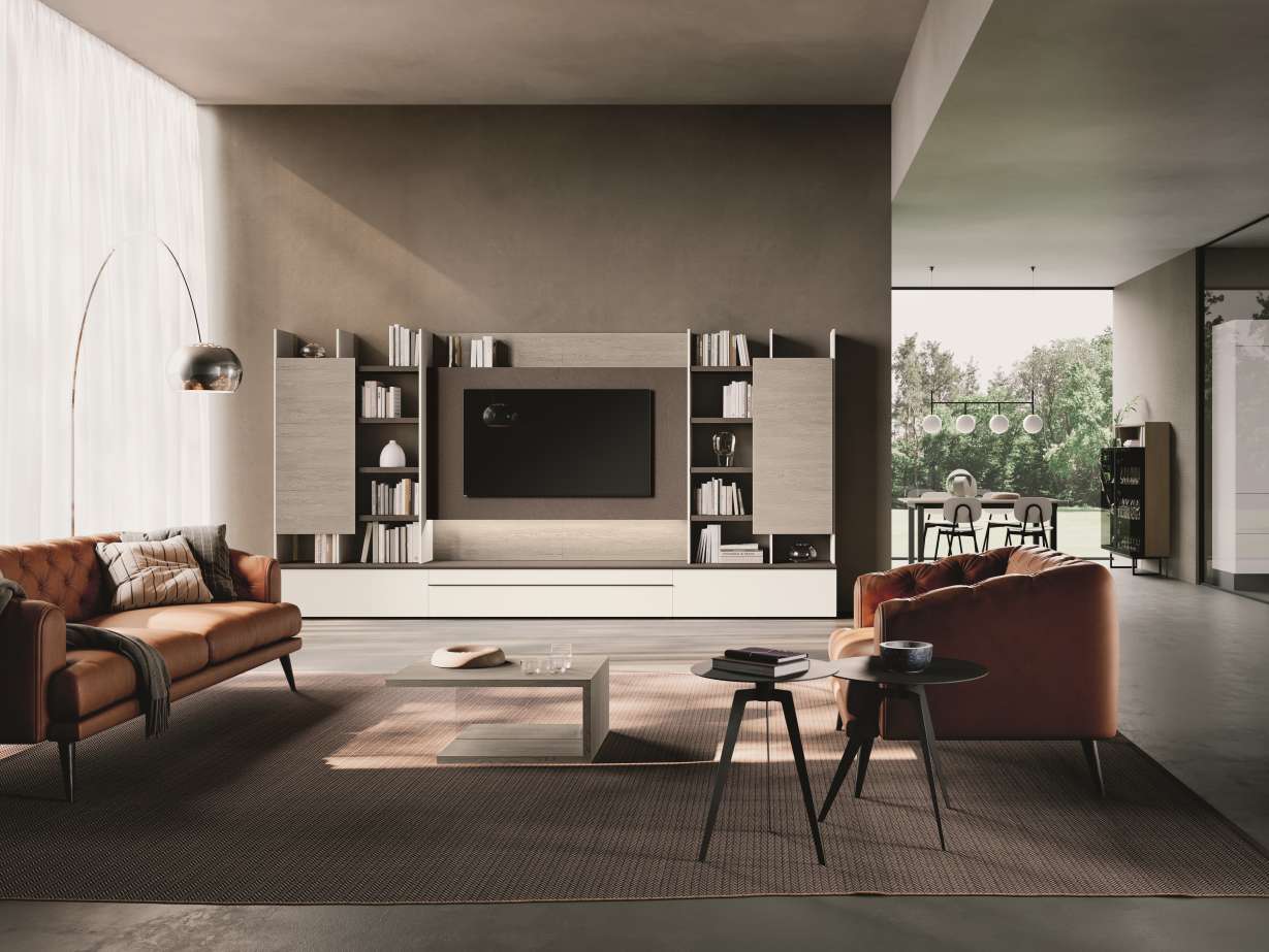 Tevere è una collezione che si compone di elementi di varie dimensioni, pensati per interagire tra loro in tante combinazioni diverse. Simmetria e corrispondenza sono le caratteristiche che fanno del soggiorno Tevere un programma unico e di design. Un arredo di carattere, che si veste di tinte intense e ricercate, al passo con il gusto contemporaneo. Estetica e funzionalità sono determinate da finiture a contrasto e sistemi innovativi. La soluzione Tevere è perfetta per chi desidera una zona living in cui stile e praticità d'uso si incontrano per un'atmosfera intima e accogliente.