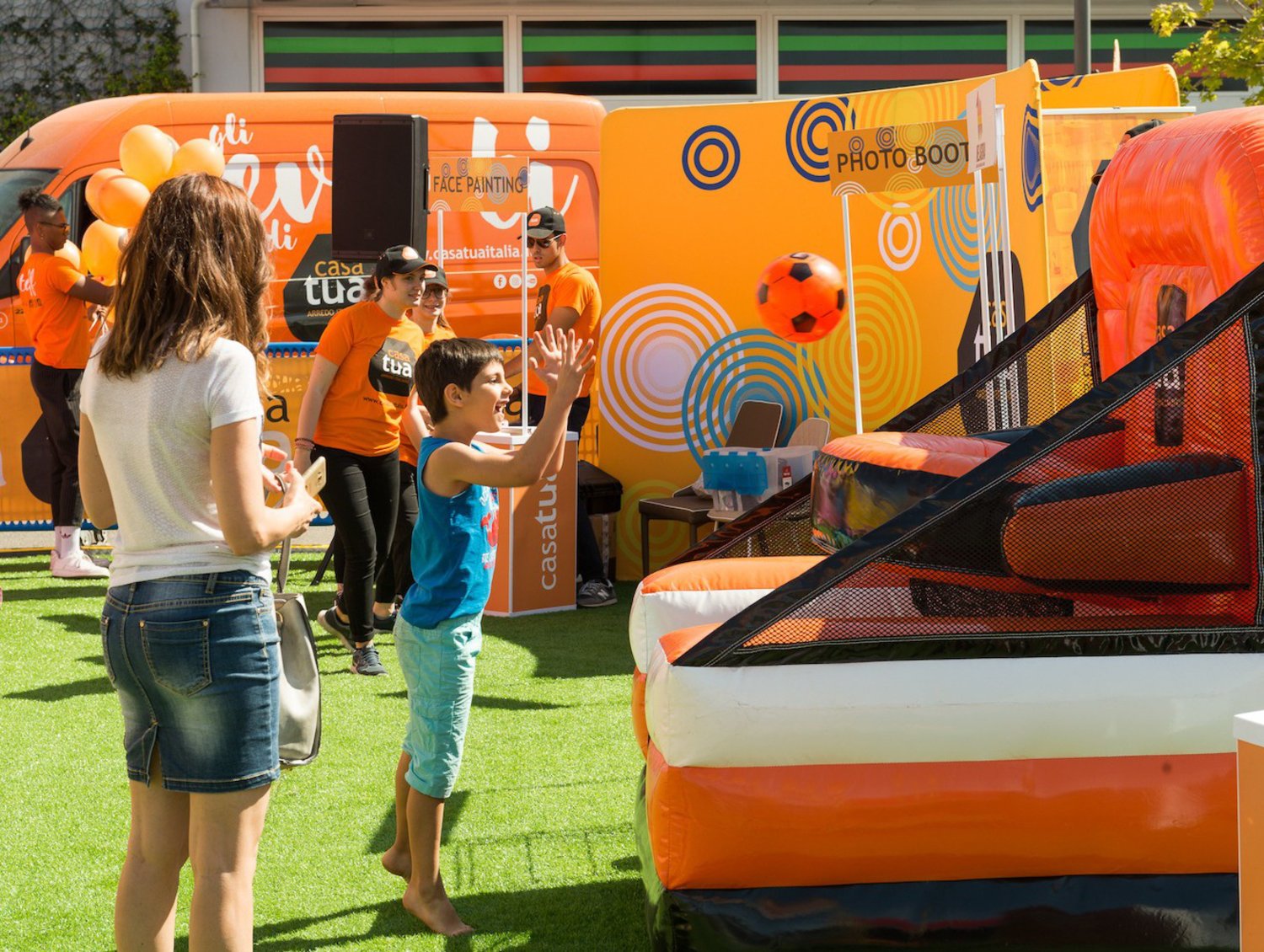 All'esterno del punto vendita è stato allestito un grande parco giochi per i piccoli, con scivoli, trucca bimbi e Shoot a Basketball.